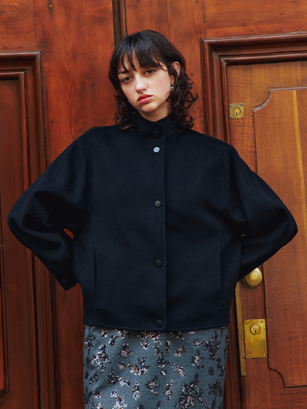 Create a sophisticated look with our black midi skirt or dare in a dress with sequin floral details. Don’t forget the final touch: the essential structured blazer.
