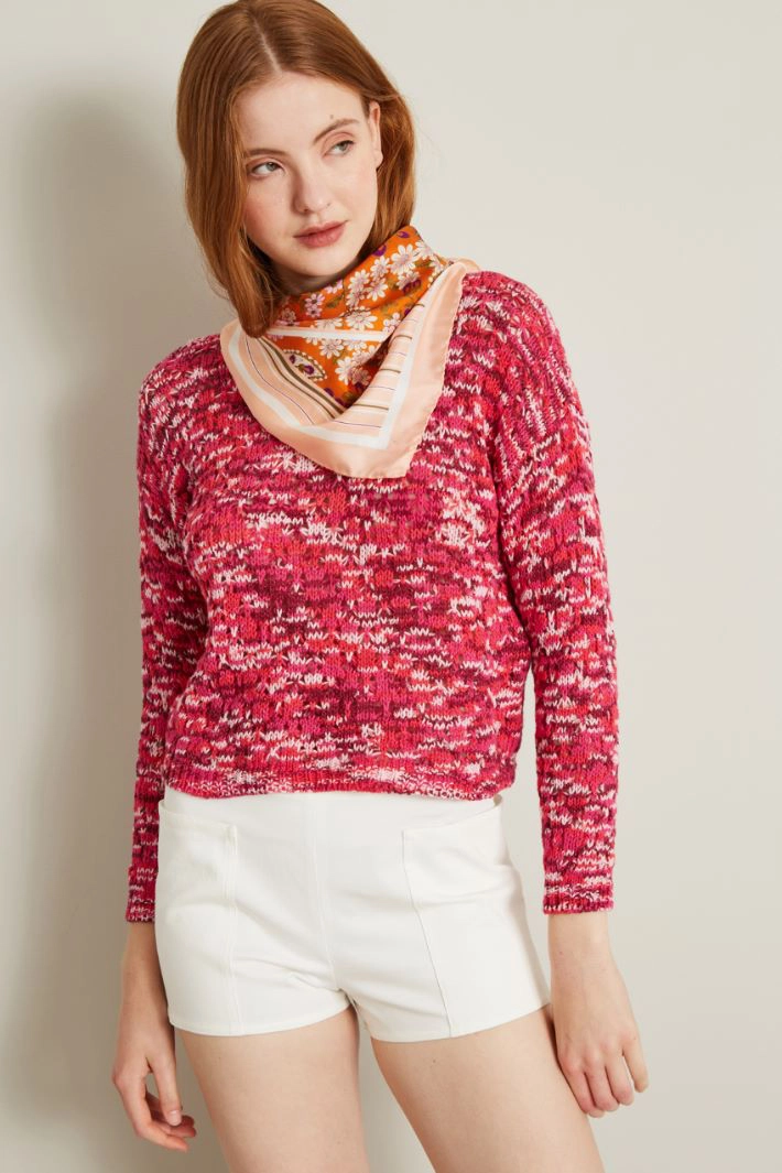 Boxy-fit sweater in pure cotton patterned yarn, with openwork knit, crew neck and long dropped sleeves.