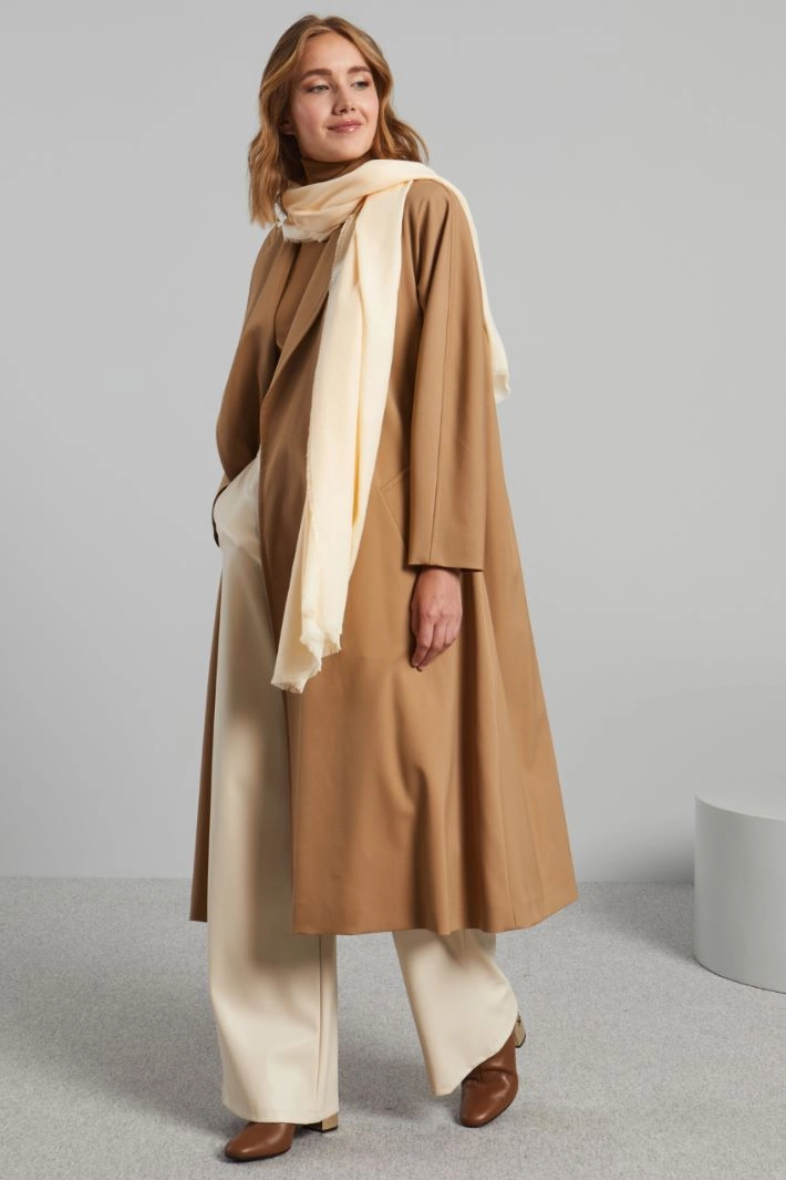 Stole in diagonal light fabric of pure natural fiber with fringed profiles.