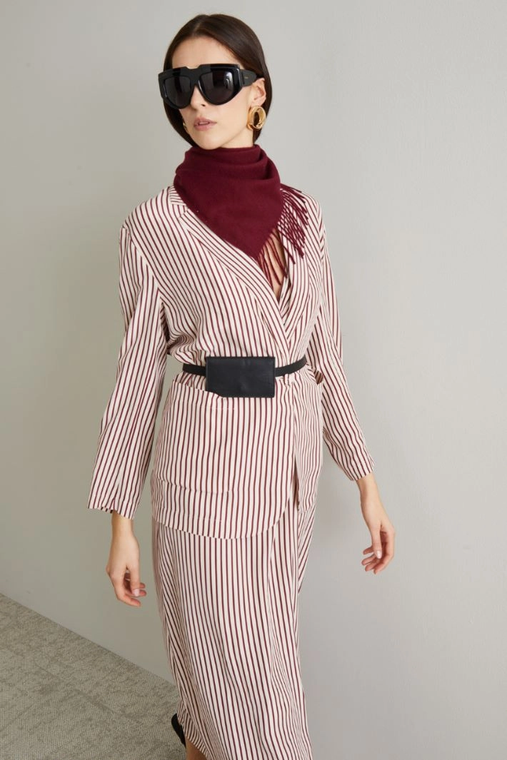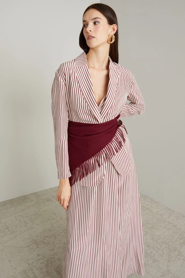 Triangle scarf in pure wool canvas, with fringes at the bottom.
