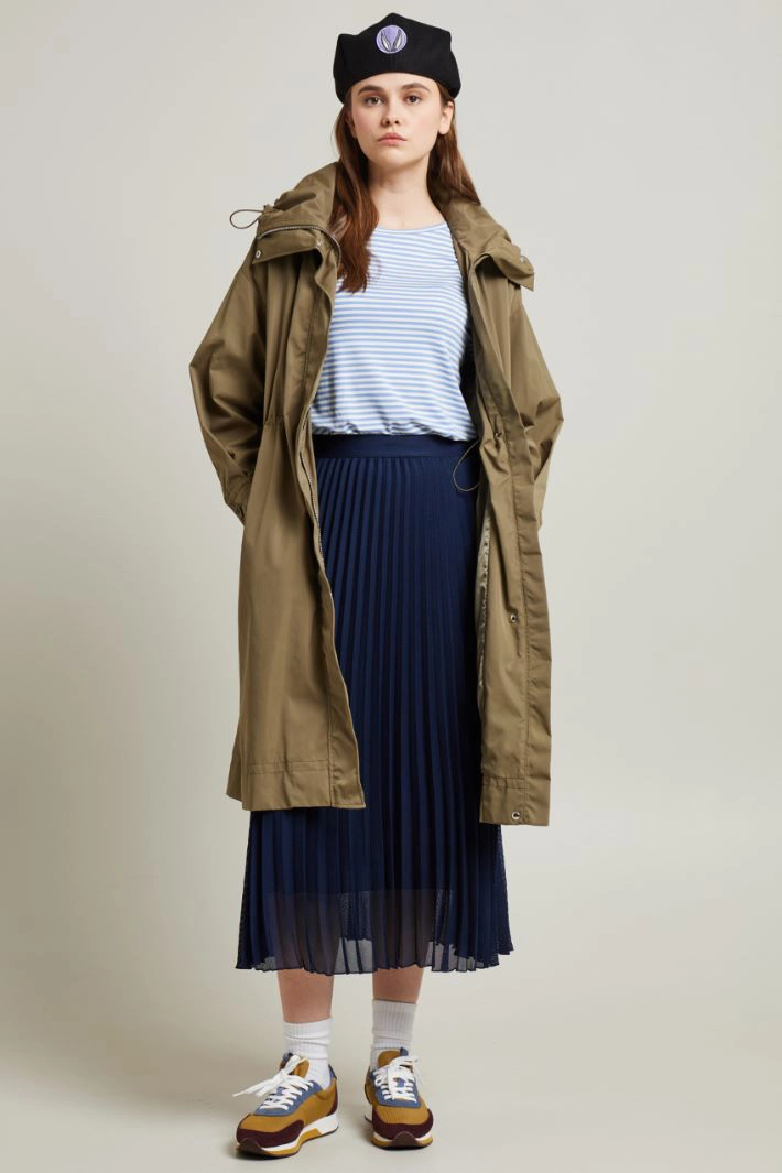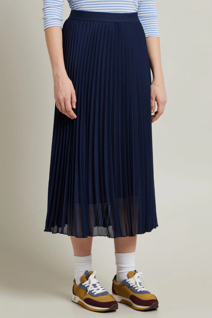 Flared skirt in viscose blend mesh fabric, with pleats and elastic waistband. Lined.